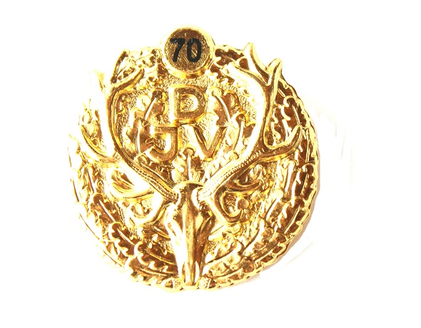 Treuenadeln und Hutabzeichen des Deutschen Jagdverbandes (DJV) für Dauer der Mitgliedschaft, 25 Jahre bis 80 Jahre